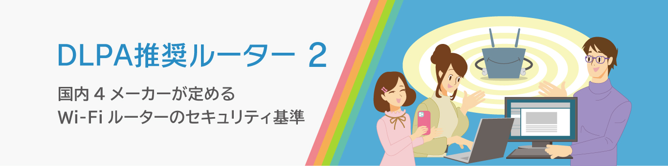 高度化する犯罪手法に応じてセキュリティはアップデートしていかなければなりません。DLPA 推奨ルーター は、より強固なセキュリティを実現するために、2026 年2月にセキュリティ基準を見直し、「DLPA 推奨ルーター 2」を策定しました。今後、DLPA 加盟の4 社が発売する家庭用Wi-Fiルーターは、原則この基準を